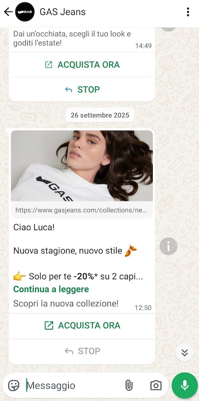 Un altro vantaggio di WhatsApp è la possibilità di inviare messaggi multimediali. Grazie alla possibilità di aggiungere immagini, video, pulsanti interattivi e link diretti ai prodotti, i retailer possono creare comunicazioni più coinvolgenti e stimolanti rispetto a un semplice SMS.